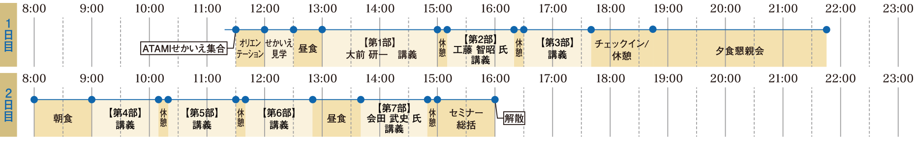会場となる「ATAMIせかいえ」は大前研一が企画、設計に関与したエグゼクティブ研修所です。 世界中のリゾートを見てきた大前にとっても「感動を覚える」と言う絶景と豊富な湯量を誇る温泉をご堪能いただけます。非日常的な空間で、その時々のキーパーソンと少人数で語りあうことで、 新しい発想、出会いがきっと得られるはずです。