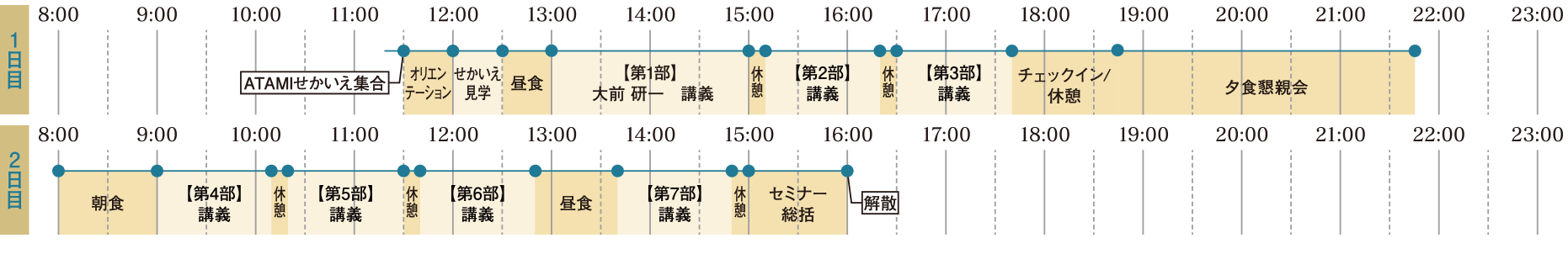 当セミナーは、企業のトップと参謀を対象にした1泊2日のエグゼクティブ研修です。その時々で、企業にとって最も重要な問題を取扱い、シリーズとして年に4回開催します。参加者は自分が参加する回だけではなく、本年度分すべての回の講義ビデオを視聴することが出来ます。また、会場となる「ATAMIせかいえ」は私が企画、設計に関与したエグゼクティブ研修所です。非日常的な空間で、その時々のキーパーソンと少人数で語りあうことで、新しい発想、出会いが得られると思います。私も参加しますので、積極的に学んでいただける方のご参加をお待ちしています。